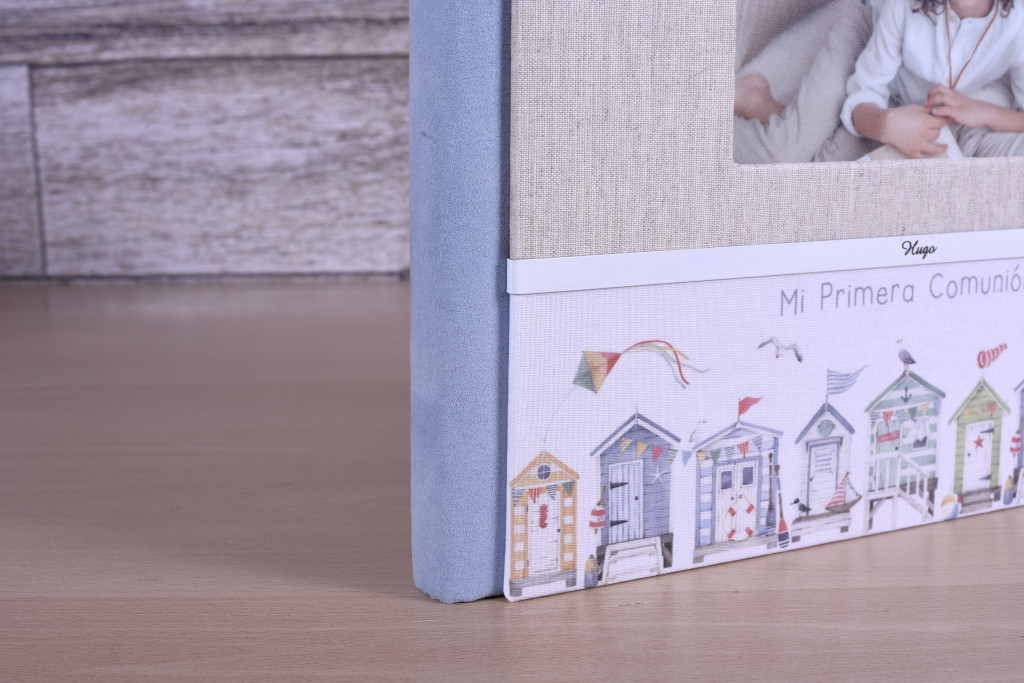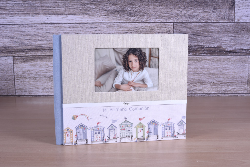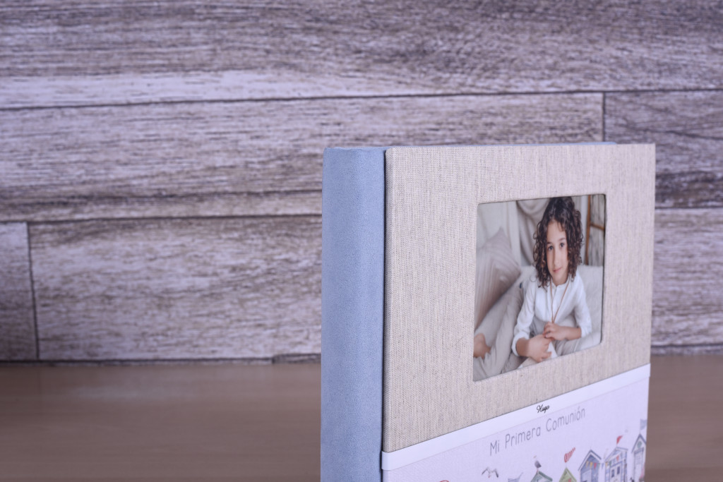 Posibilidad de hacer este diseño en cuatro opciones: con ventana y tira de terciopelo, con ventana y tira metálica, con foto superior horizontal y tira de terciopelo o con foto superior horizontal y tira metálica.
