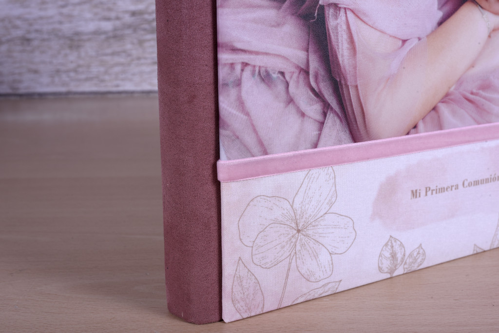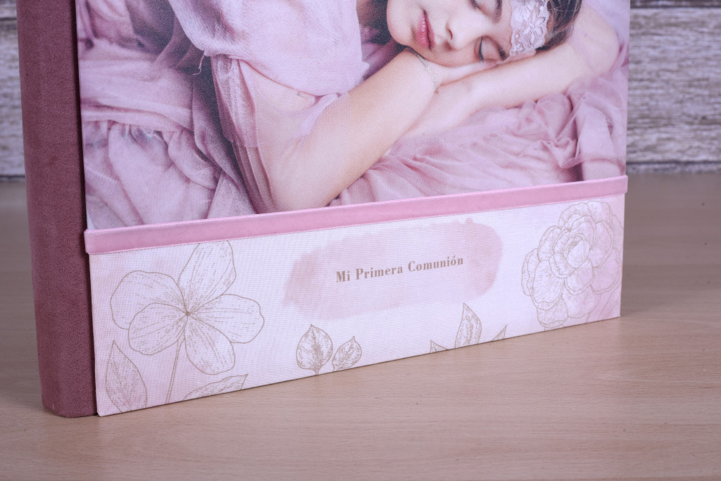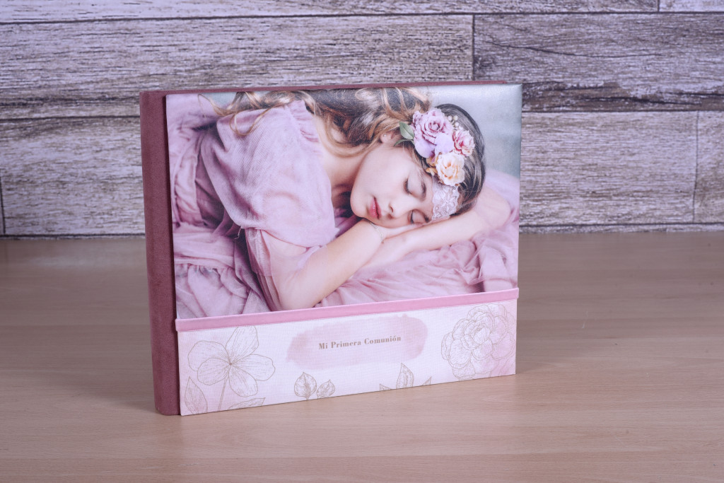 Posibilidad de hacer este diseño en cuatro opciones: con ventana y tira de terciopelo, con ventana y tira metálica, con foto superior horizontal y tira de terciopelo o con foto superior horizontal y tira metálica.