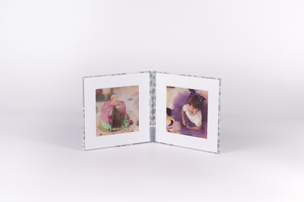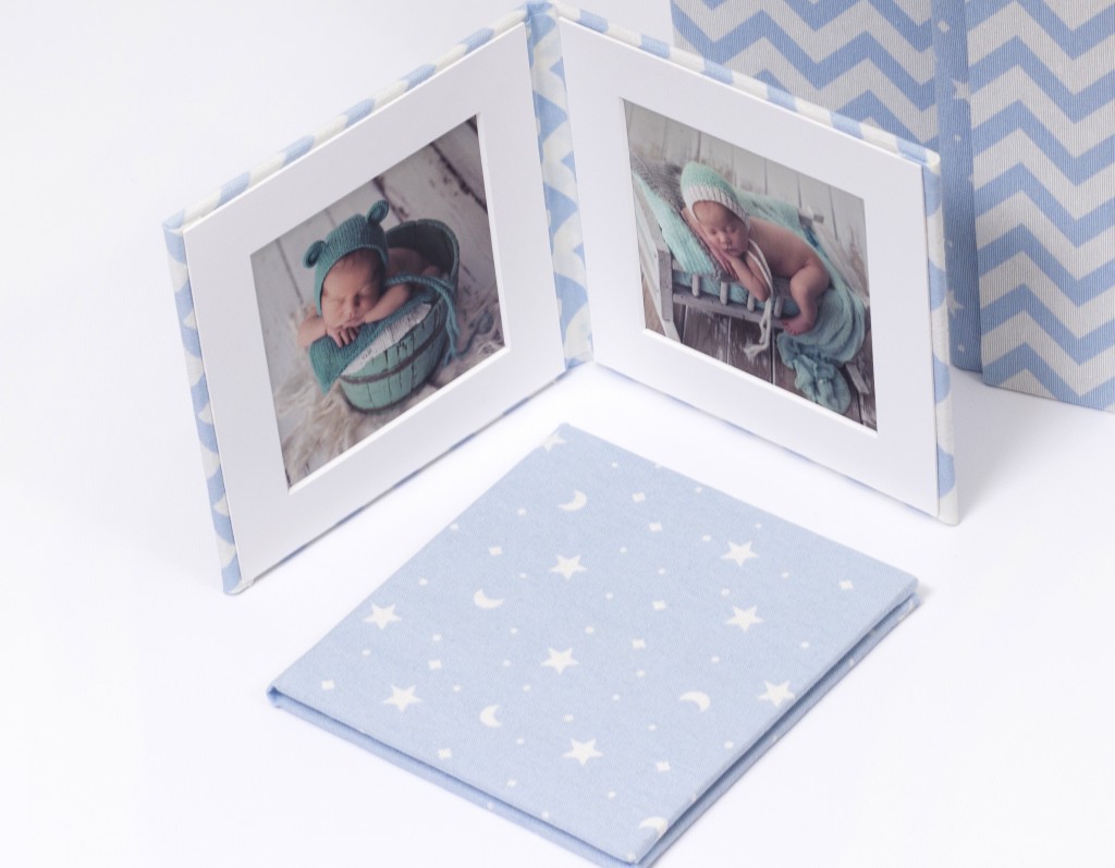 Carpeta tamaño 12x12 para dos fotografias con paspartú en formato cuadrado.