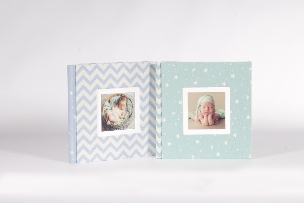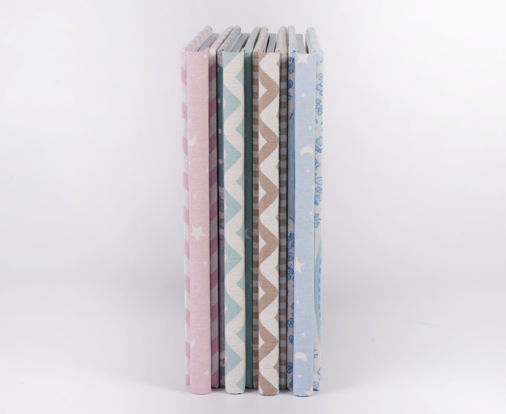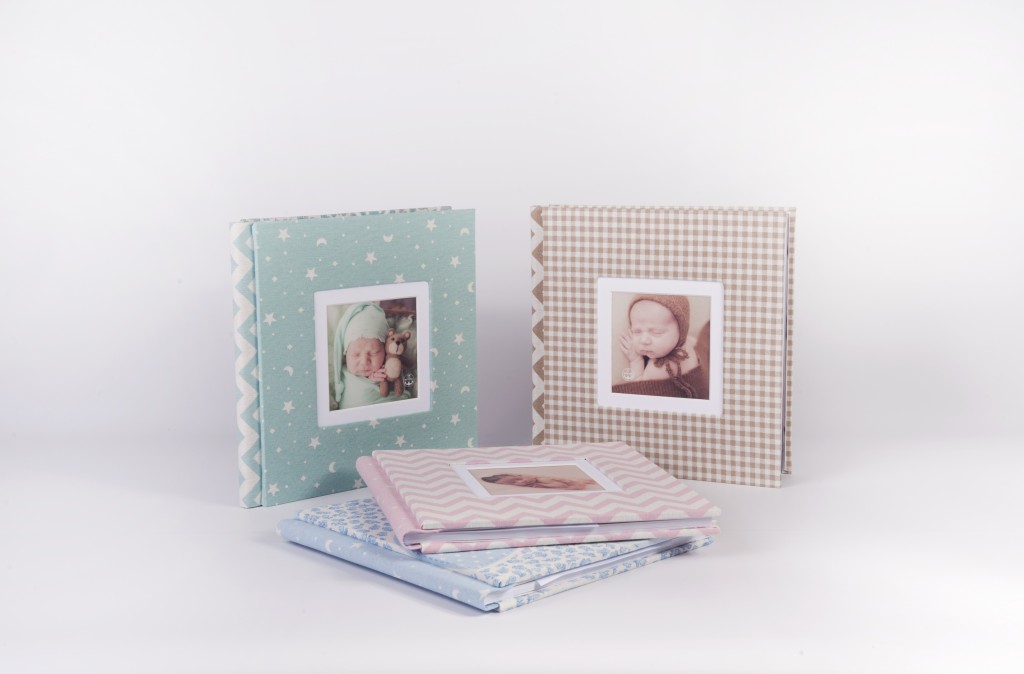 Posibilidad de fabricar el álbum con tres materiales distintos: portada, lomo y trasera combinados en color pero con distintos motivos infantiles.